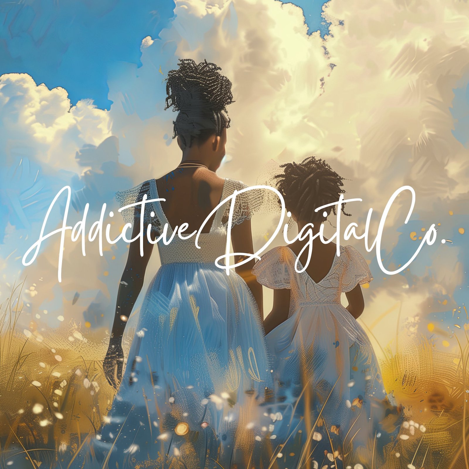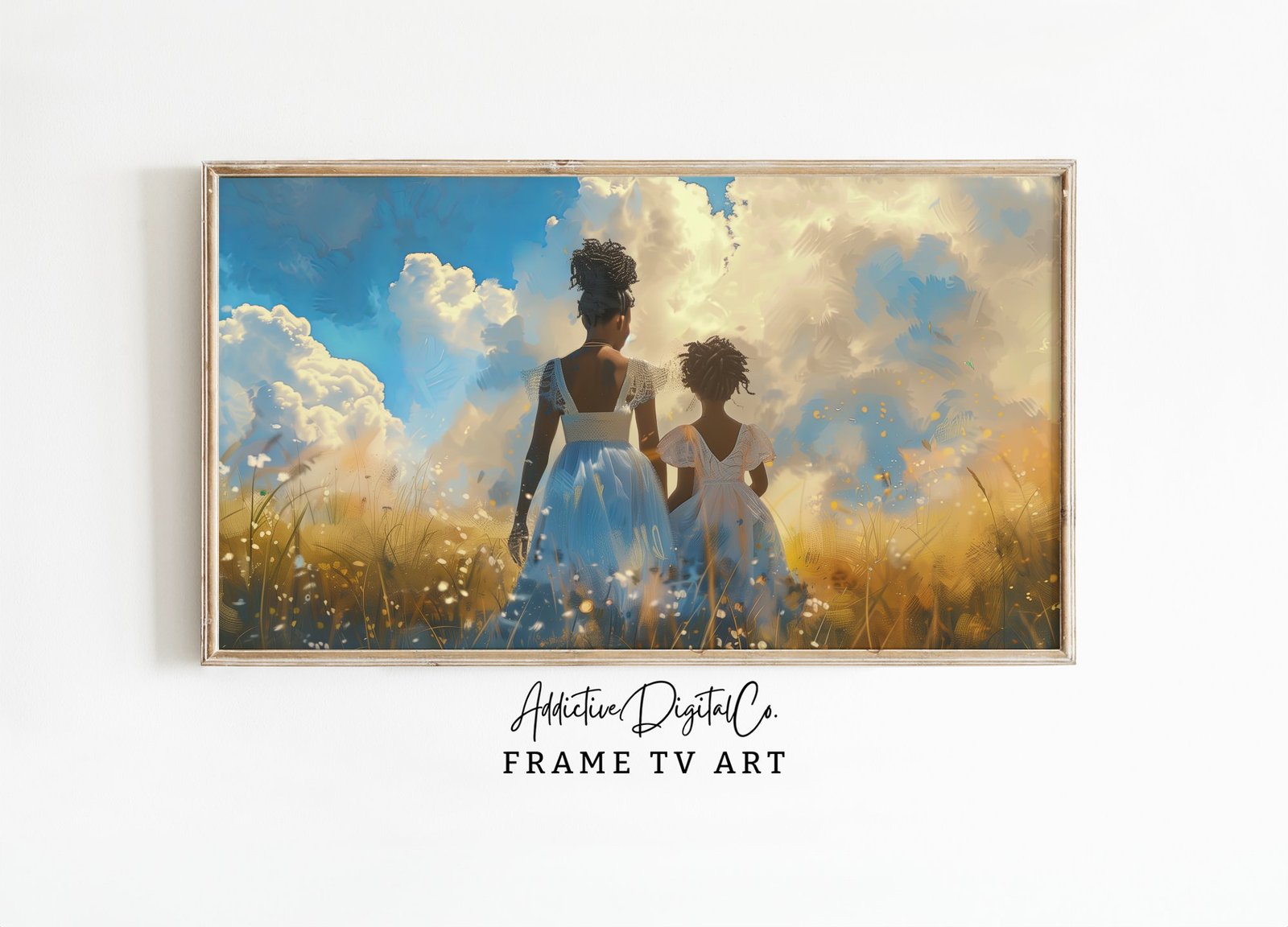 African-American Mother Daughter Frame Tv Art, Mother’s Day Art Tv Decor, Black Family Love Tv Screensaver Jpg, Cloudy Sunset Frame Tv Art