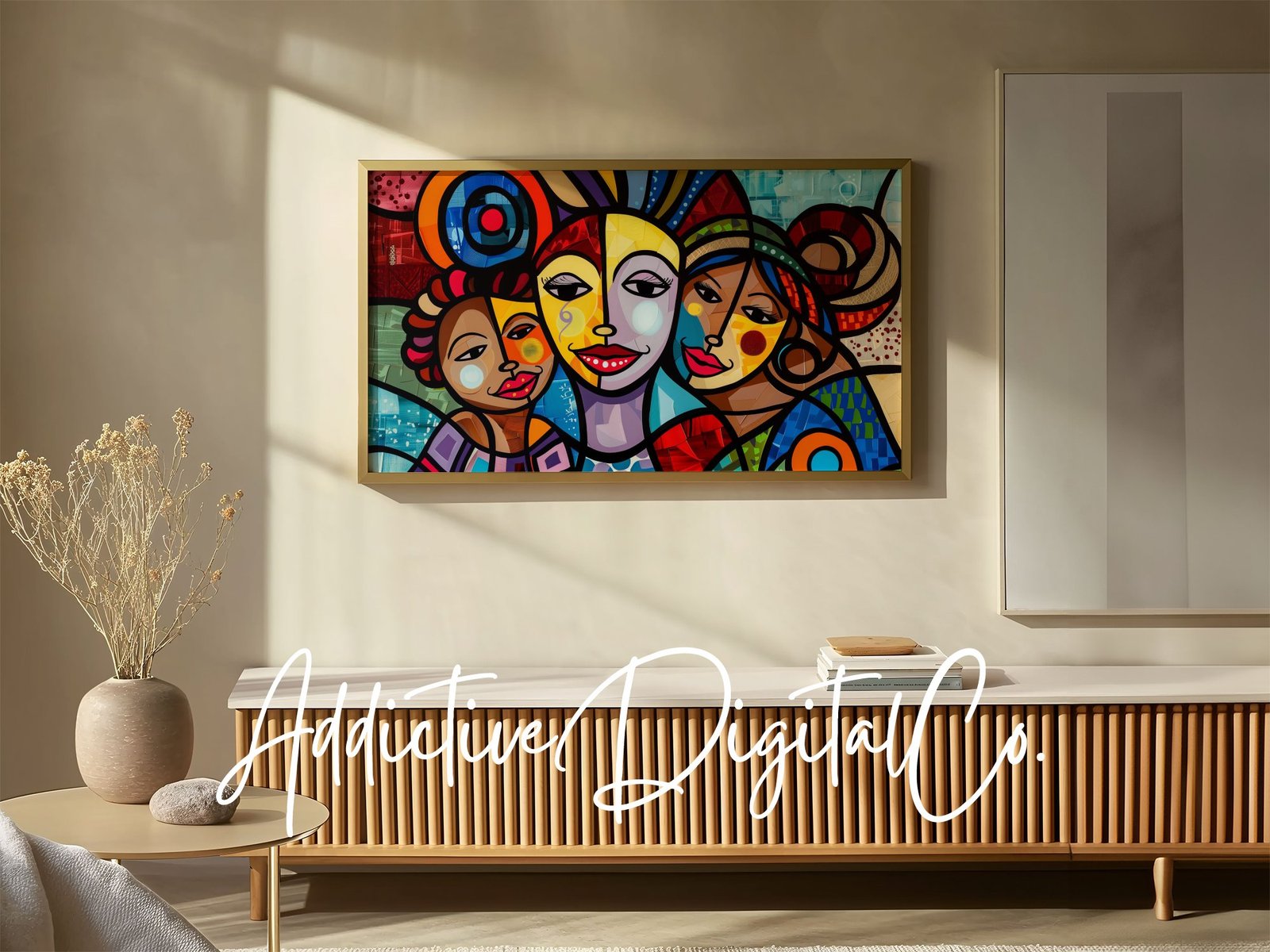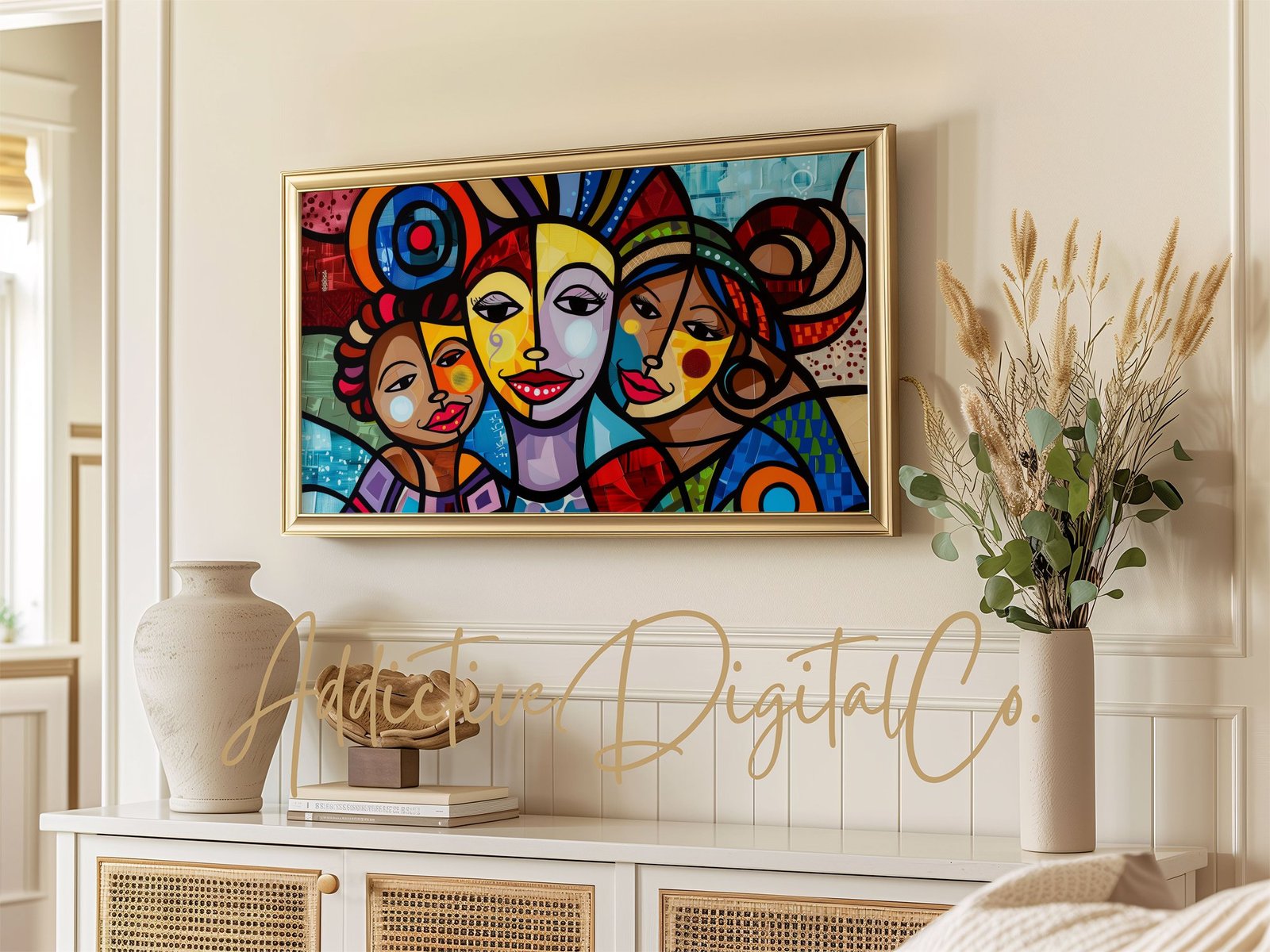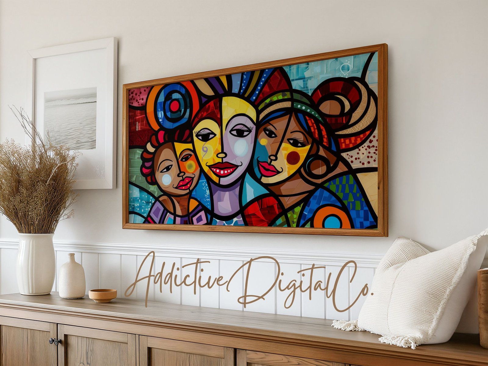 Colorful Abstract Black Family Frame Tv Art, Mother’s Day Art Tv Decor, Digital Family Portrait Tv Screensaver Jpg, Vibrant Frame Tv Art