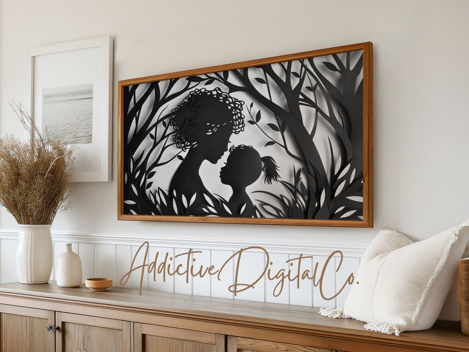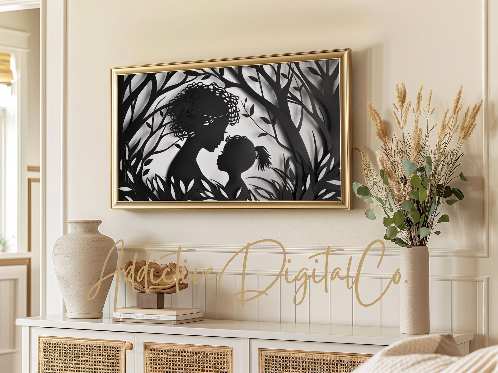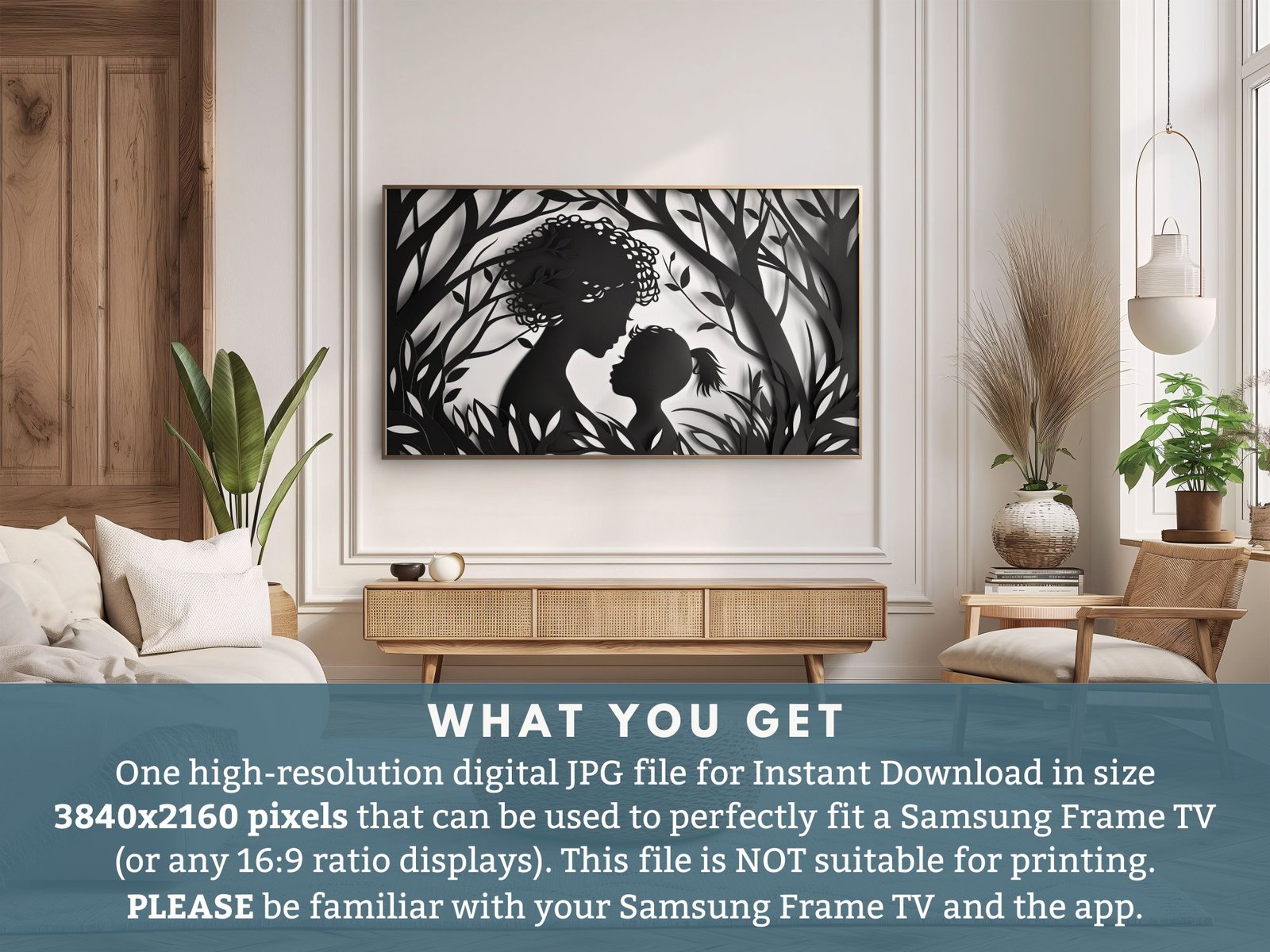 Celebrate the unbreakable bond of motherhood with our Mother and Child Frame TV Art. Perfect for Mother’s Day, this silhouette digital art will transform your Samsung Frame TV into a beautiful display of familial love. 🖼️❤️ Easy to download and display, this JPG file is a heartfelt addition to your home decor. Instantly elevate your living space with a touch of elegance and emotion.