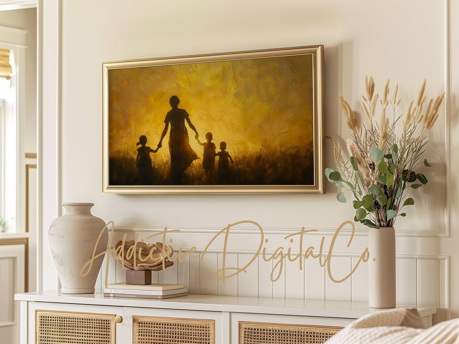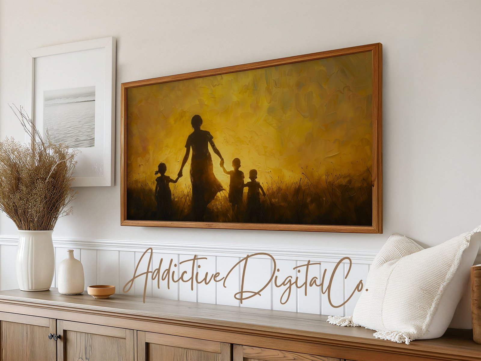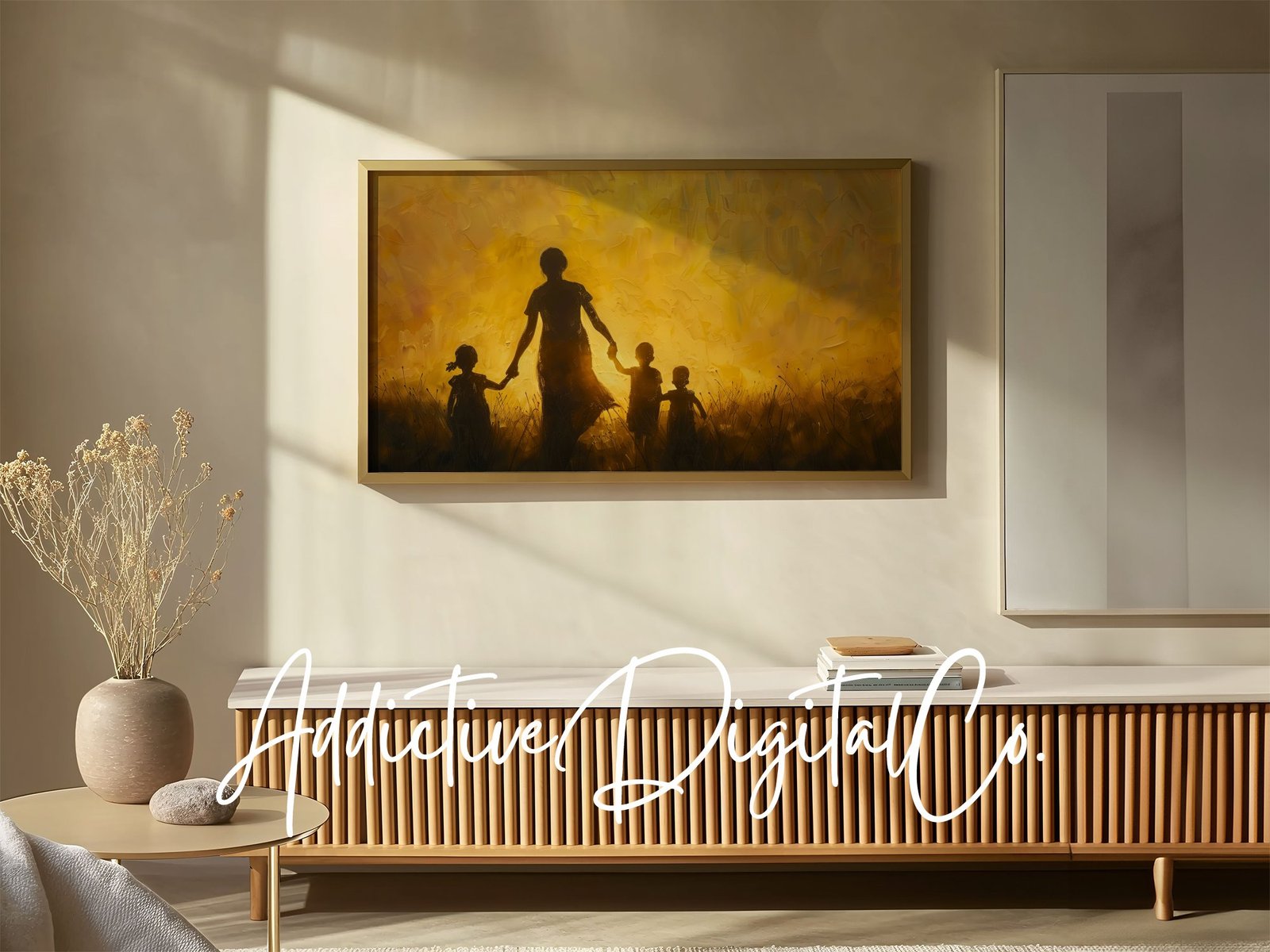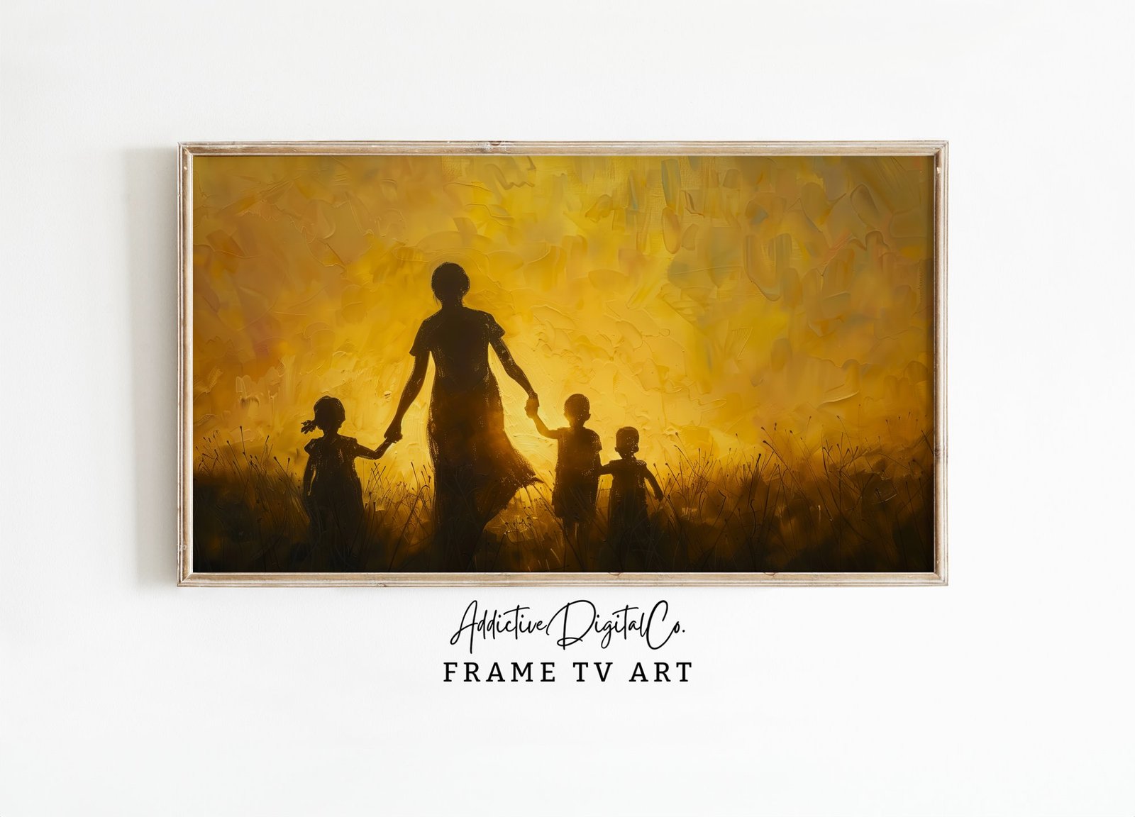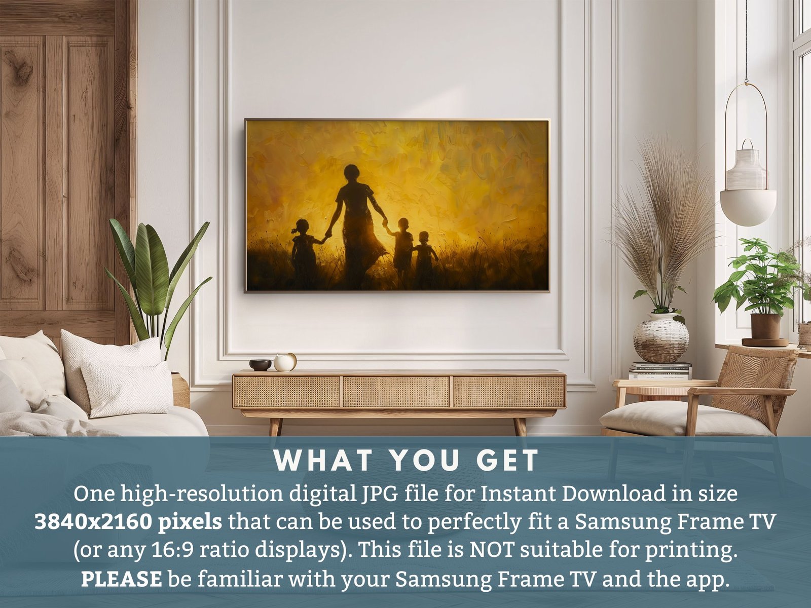 π Bring warmth and love into your living space with this stunning Sunset Silhouette on your Frame TV. Perfect for adding a touch of elegance to your home, this digital art piece features a beautiful silhouette of a family enjoying a serene moment in a field at sunset. Instantly transform your Samsung Frame TV into a captivating piece of art that celebrates the bond of family and the beauty of nature. Whether for Mother’s Day or just to say ‘I love you’, this screensaver makes for an enchanting visual treat. Downloadable as a high-quality JPG, itβs designed to fit seamlessly into the unique aspect of your Frame TV. πΎπ¨βπ©βπ§βπ¦